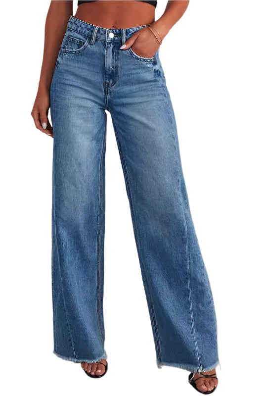 These wide-leg jeans feature a high-rise waist and durable denim fabric, combining classic style with a modern, relaxed fit for versatile wear.