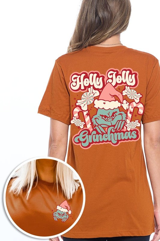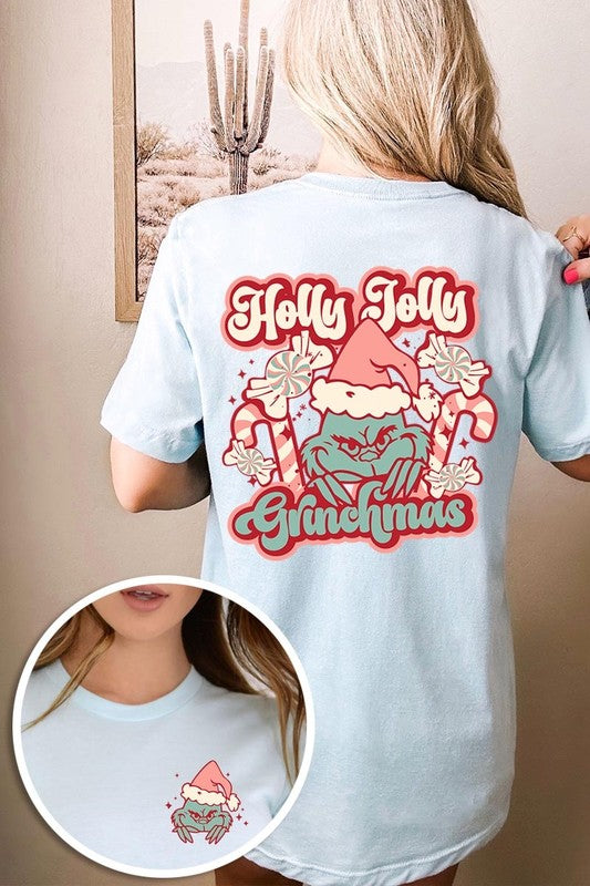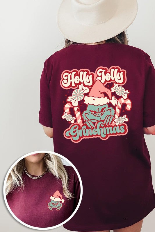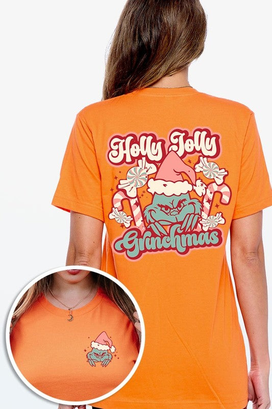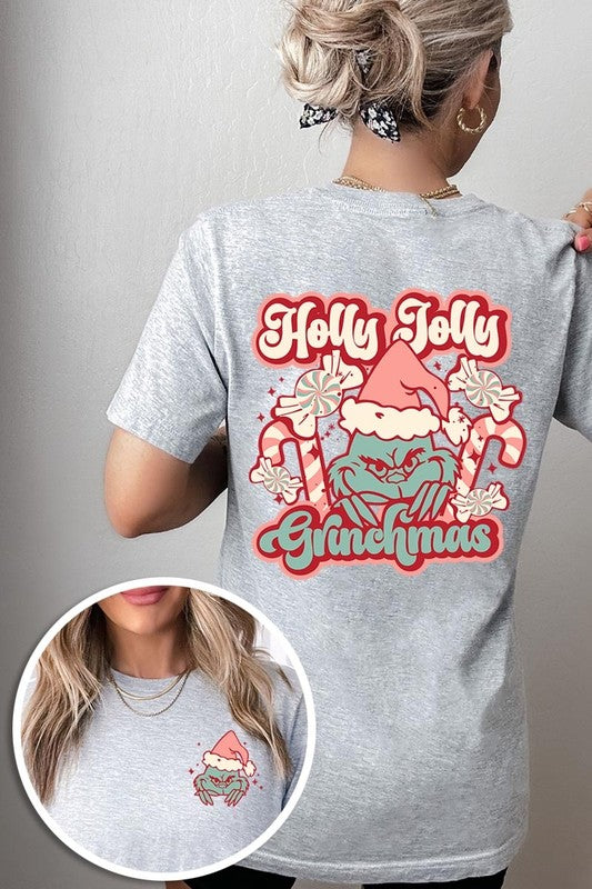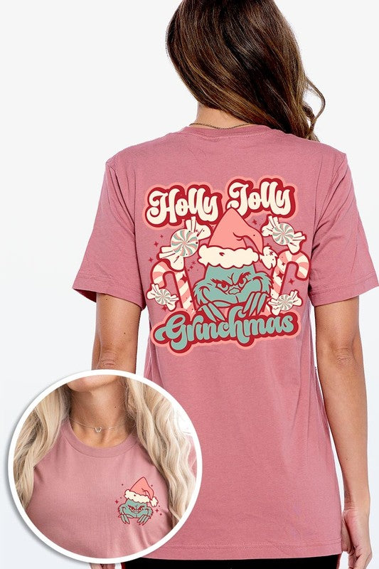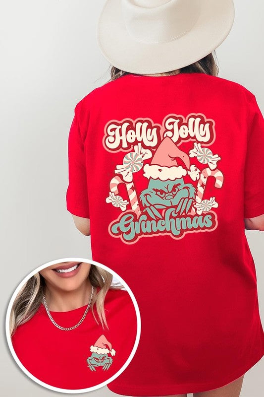 Holly Jolly Grinchmas Front & Back Graphic Tee.