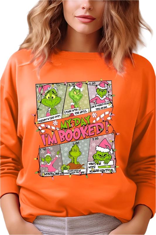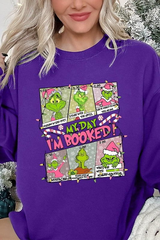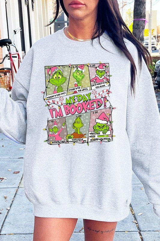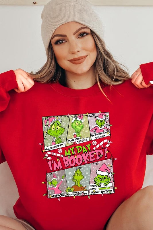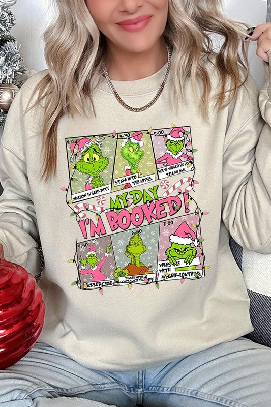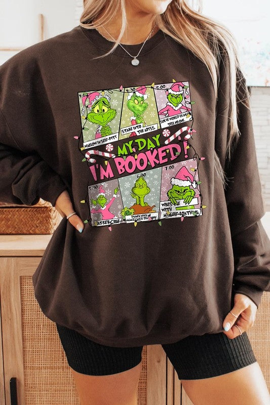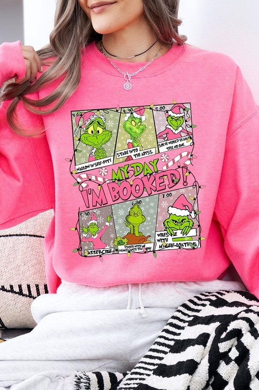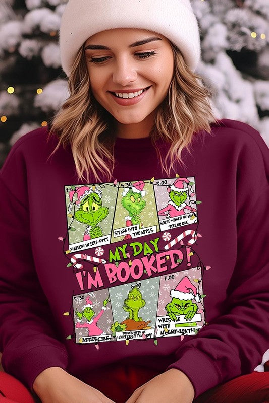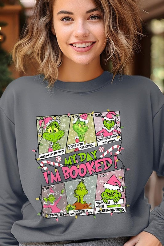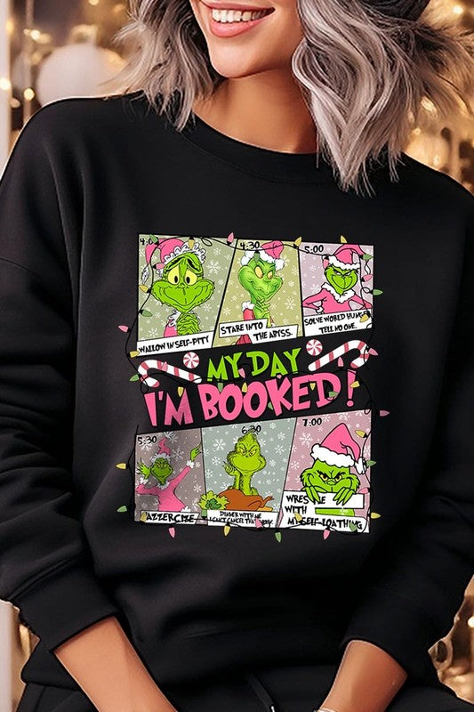 My Day I'm Booked Grinch Graphic Fleece Sweatshirts.