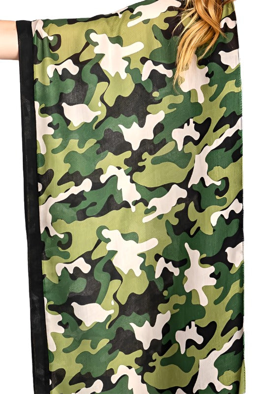 Camouflage Print Extra Long Kimono Duster Cardigan