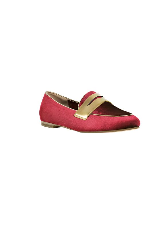 The loafers are a must-have, crafted with beautiful, luscious velvet and gorgeous metallic penny strap detail!