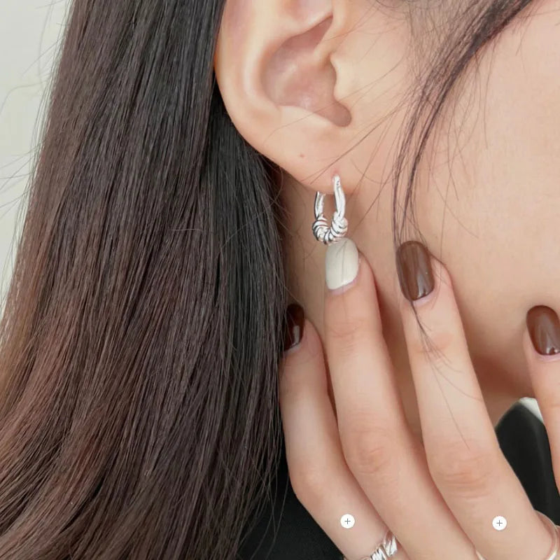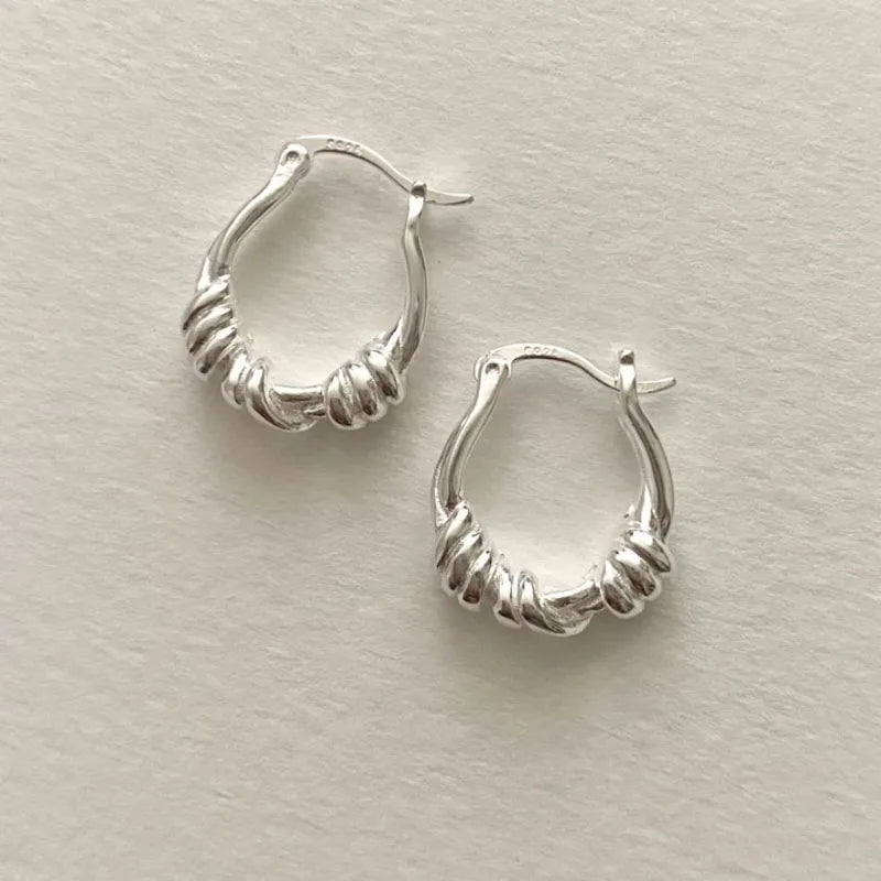 925 Sterling Silver Handmade Twist Knot Shape Hoop Earring