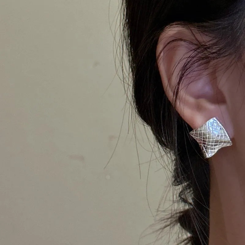 925 Sterling Silver Geometric Square Shape Stud Earring