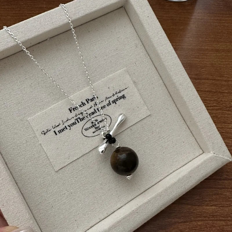 925 Sterling Silver Round Tiger Eye Stone Necklace