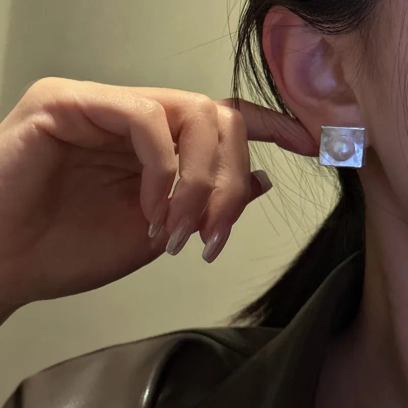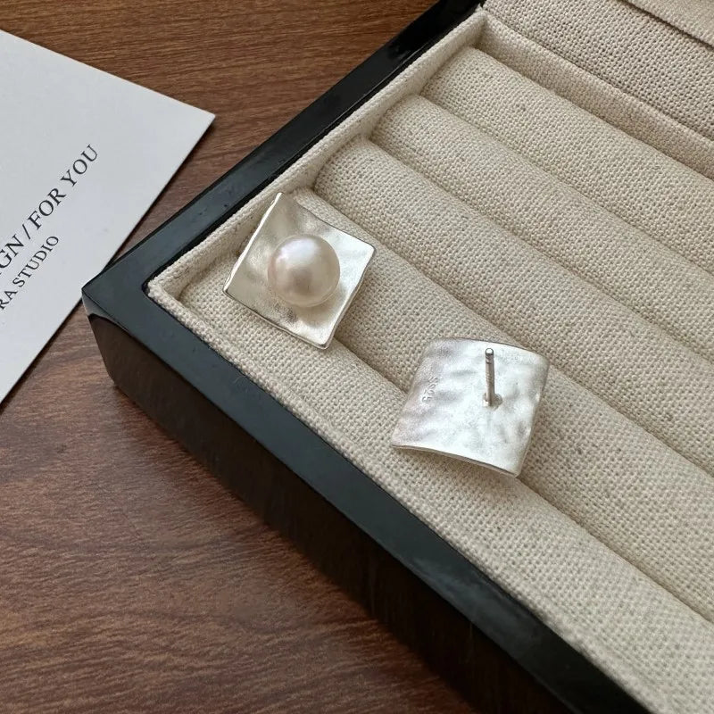 Bijoux Luxury 925 Sterling Silver Square Shape Freshwater Pearl Inlay Women Female Stud Earrings