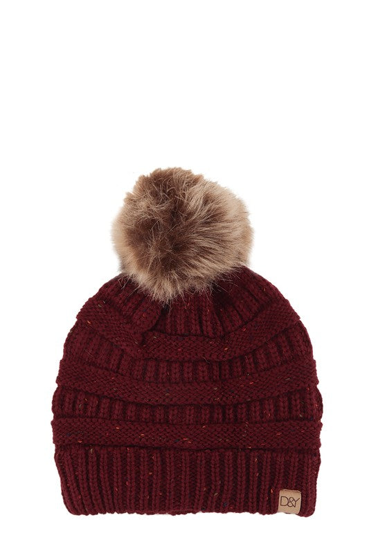 Colorful Confetti Slinky Beanie with Faux Fur Pom-PomCruelty Free FashionPeTA Approved VEGAN