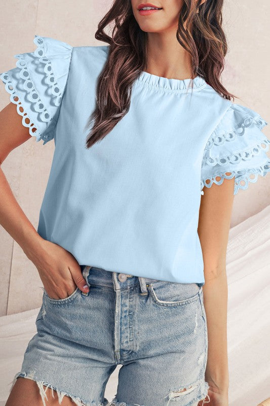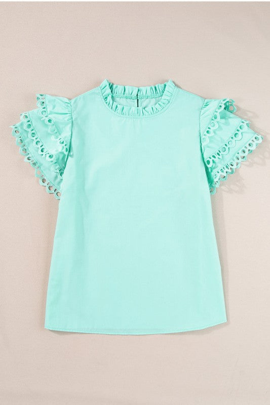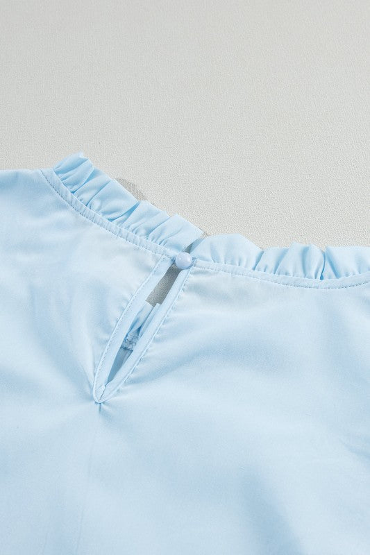 • Elevate your wardrobe with our blouse, exuding elegance and charm with its intricate ruffle and frill detailing.