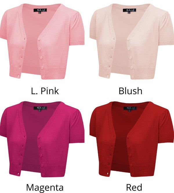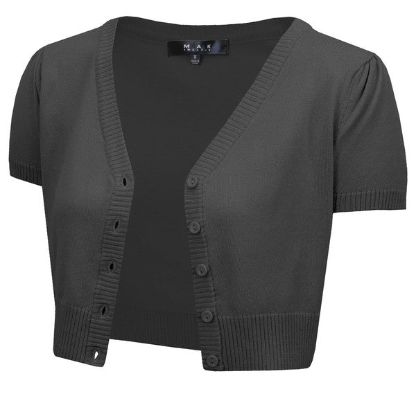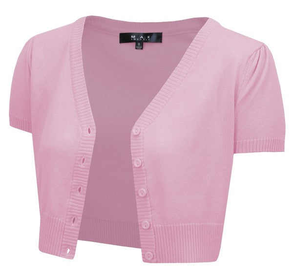 -V Neck, Bolero Knit Cardigan Sweater that Hits Upper Waist Point