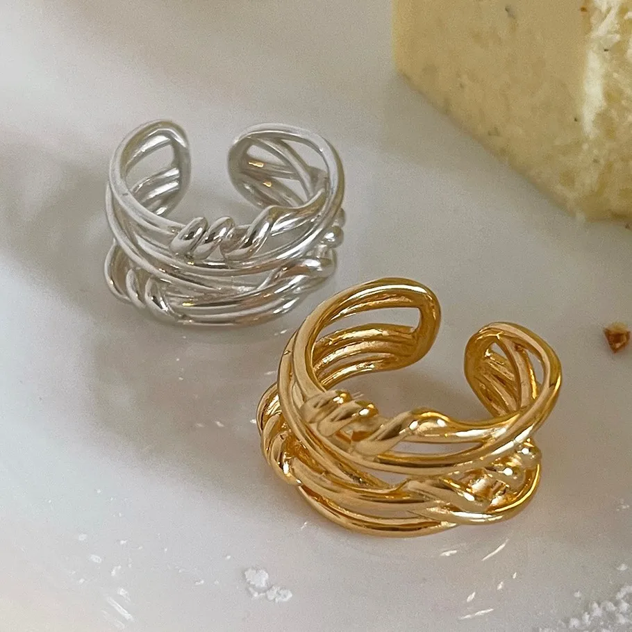 925 Sterling Silver Vintage Braided Multi-layer Finger Ring