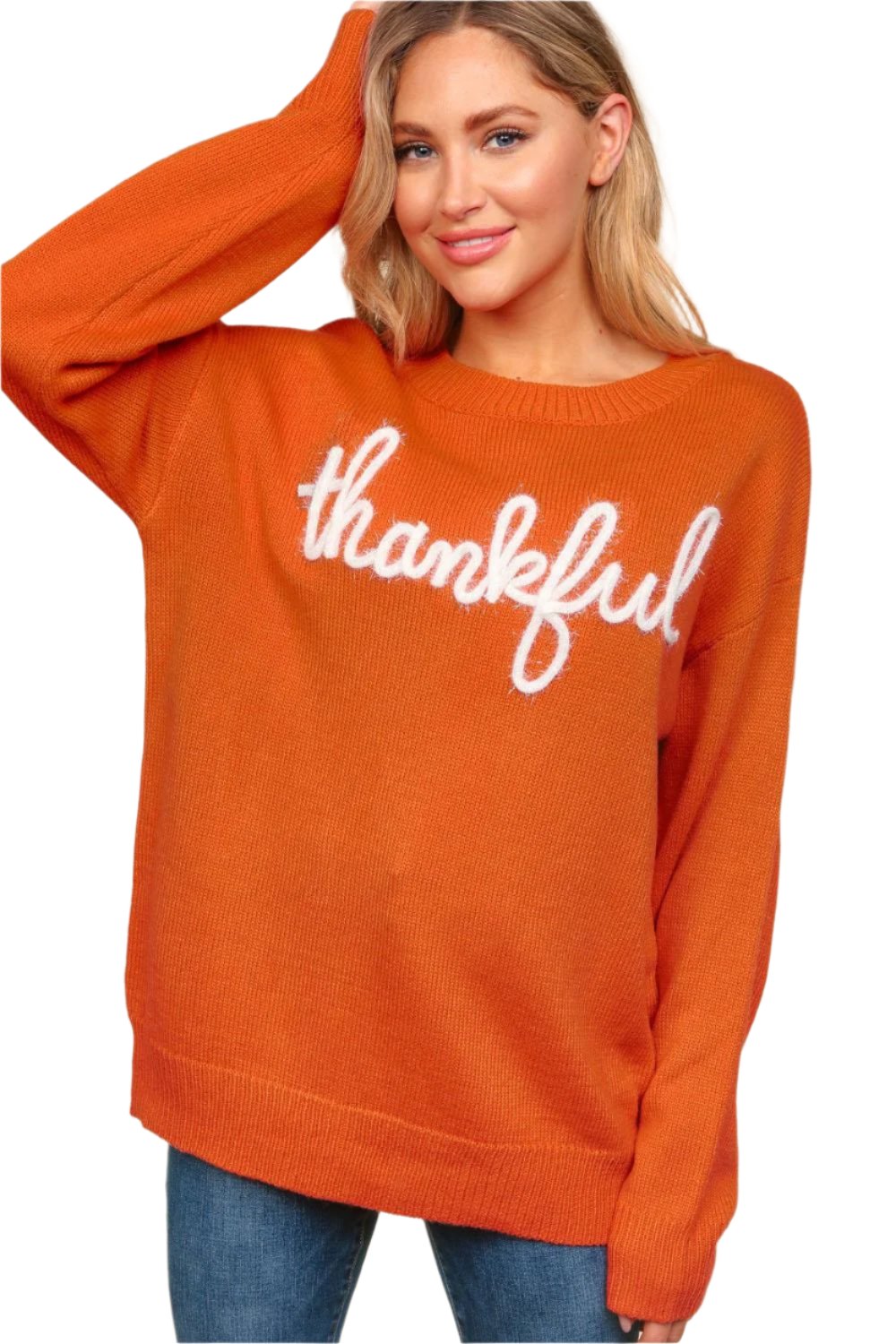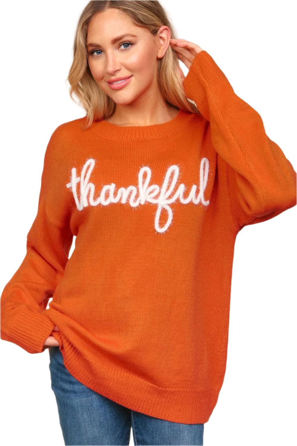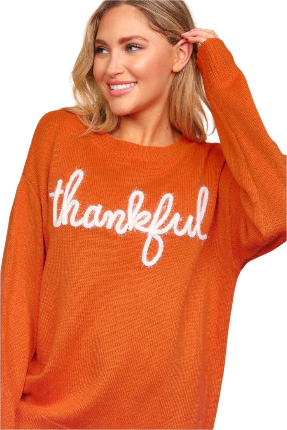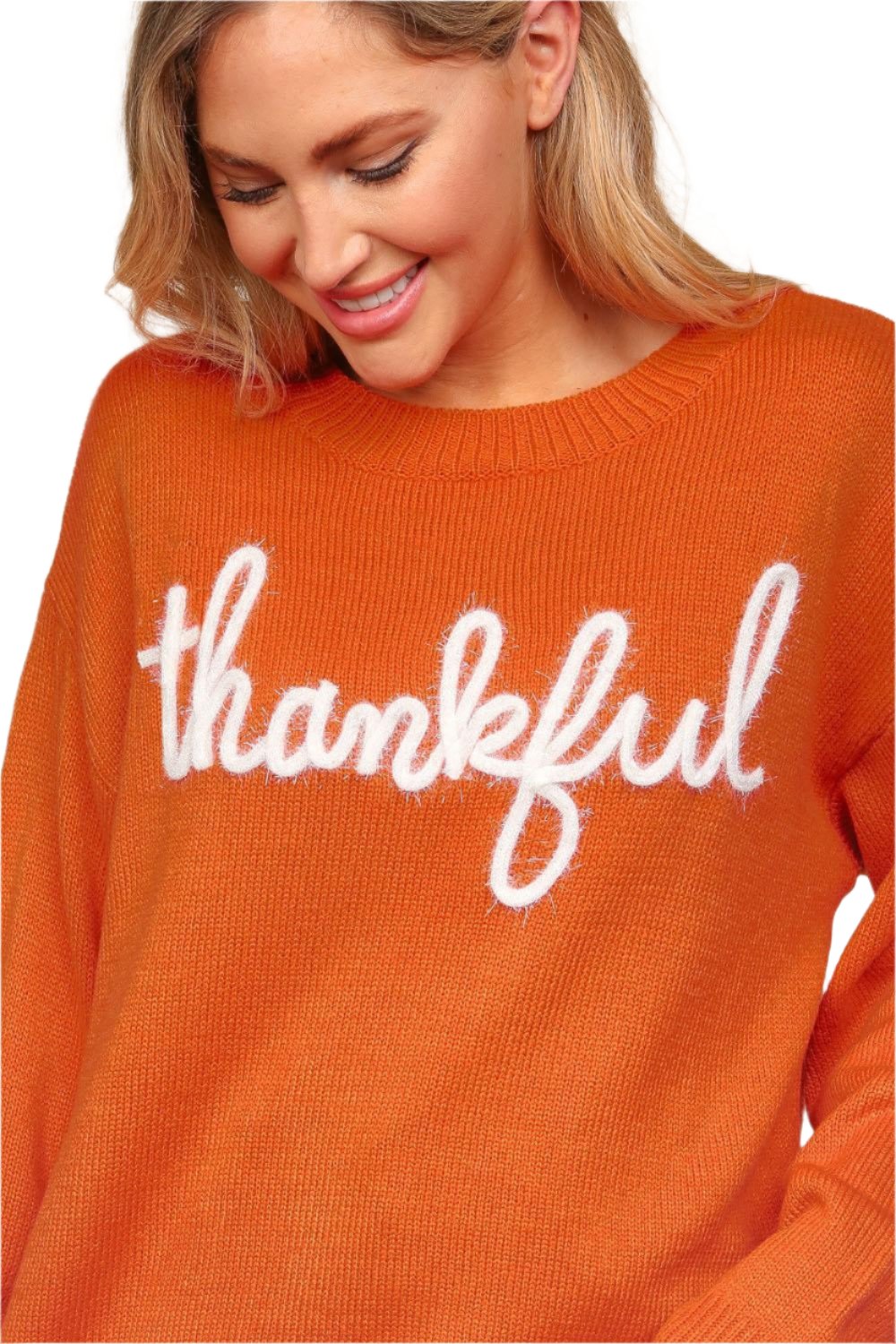 Thanksgiving Full Size Metallic Glitter Embroidery Sweater