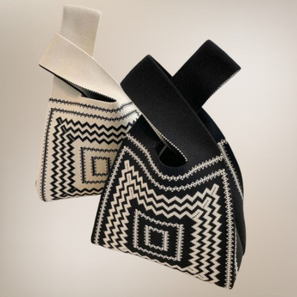 The stunning Lizzie Satchel features a unique geometric design that's woven into the fabric, creating a beautiful and eye-catching pattern.