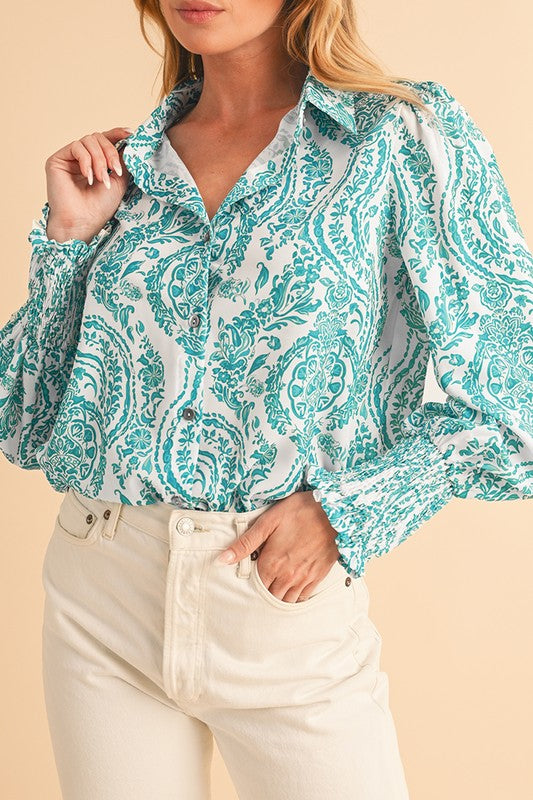 The intricate paisley print exudes a sense of elegance and sophistication, making this shirt a versatile piece for both casual and formal occasions.