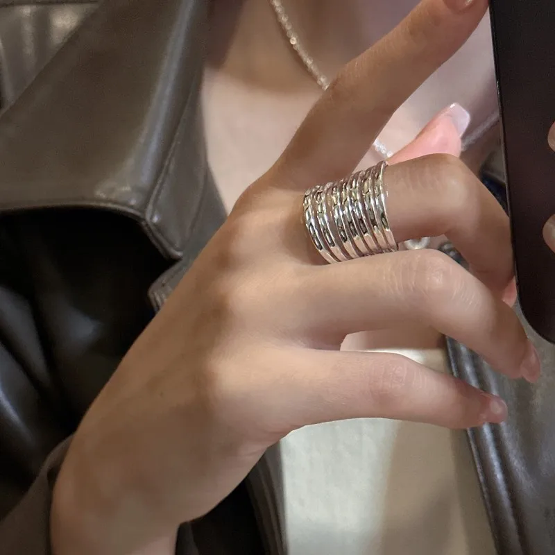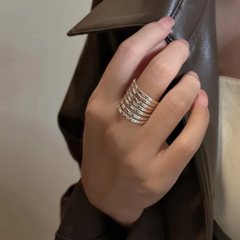Vintage 925 Sterling Silver Multi-layer Hammered Texture Chunky Finger Ring