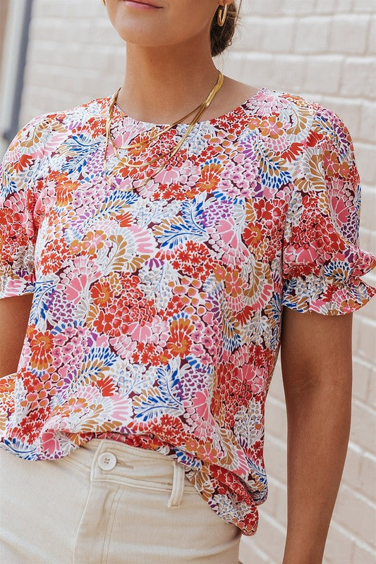 Our Mix Floral Pattern Bubble Sleeve Blouse features a vibrant mix of floral prints that are sure to turn heads and make a statement